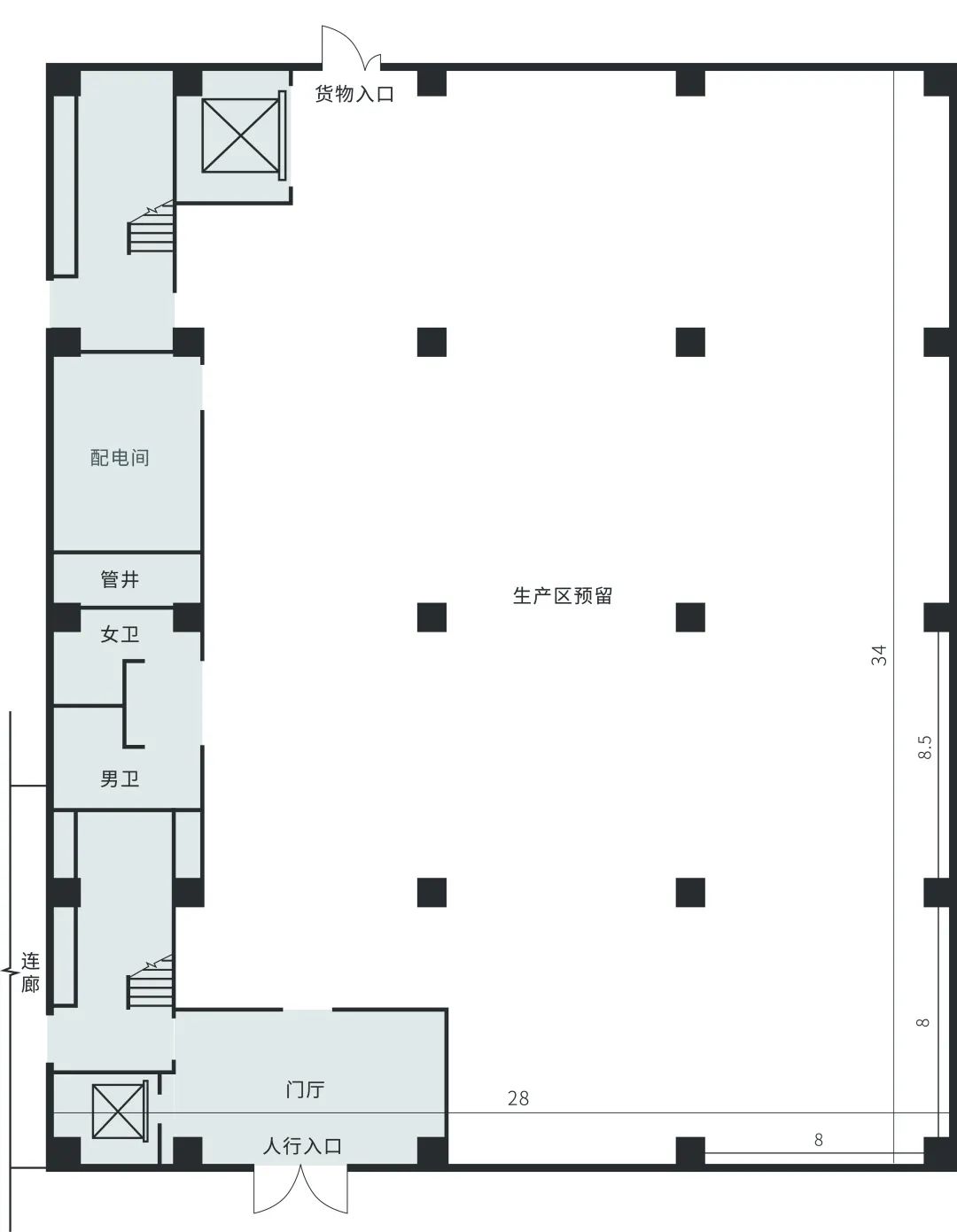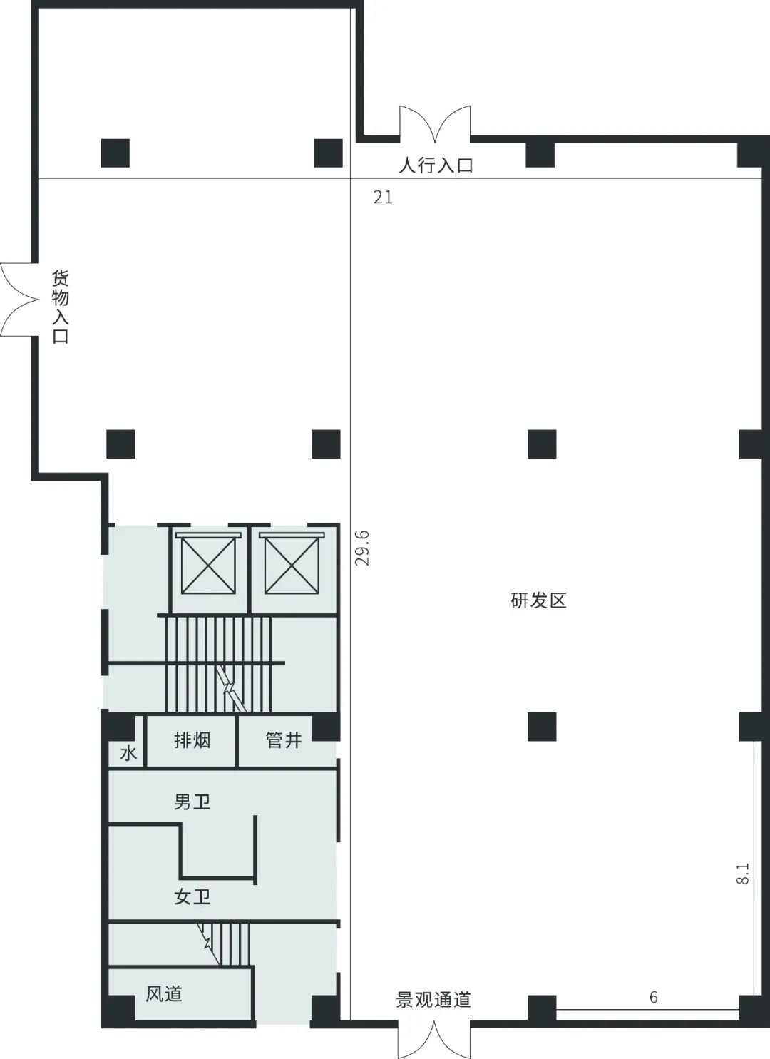 客梯Passenger lift:1600*1500 貨梯Goods lift:1900*2300 |
